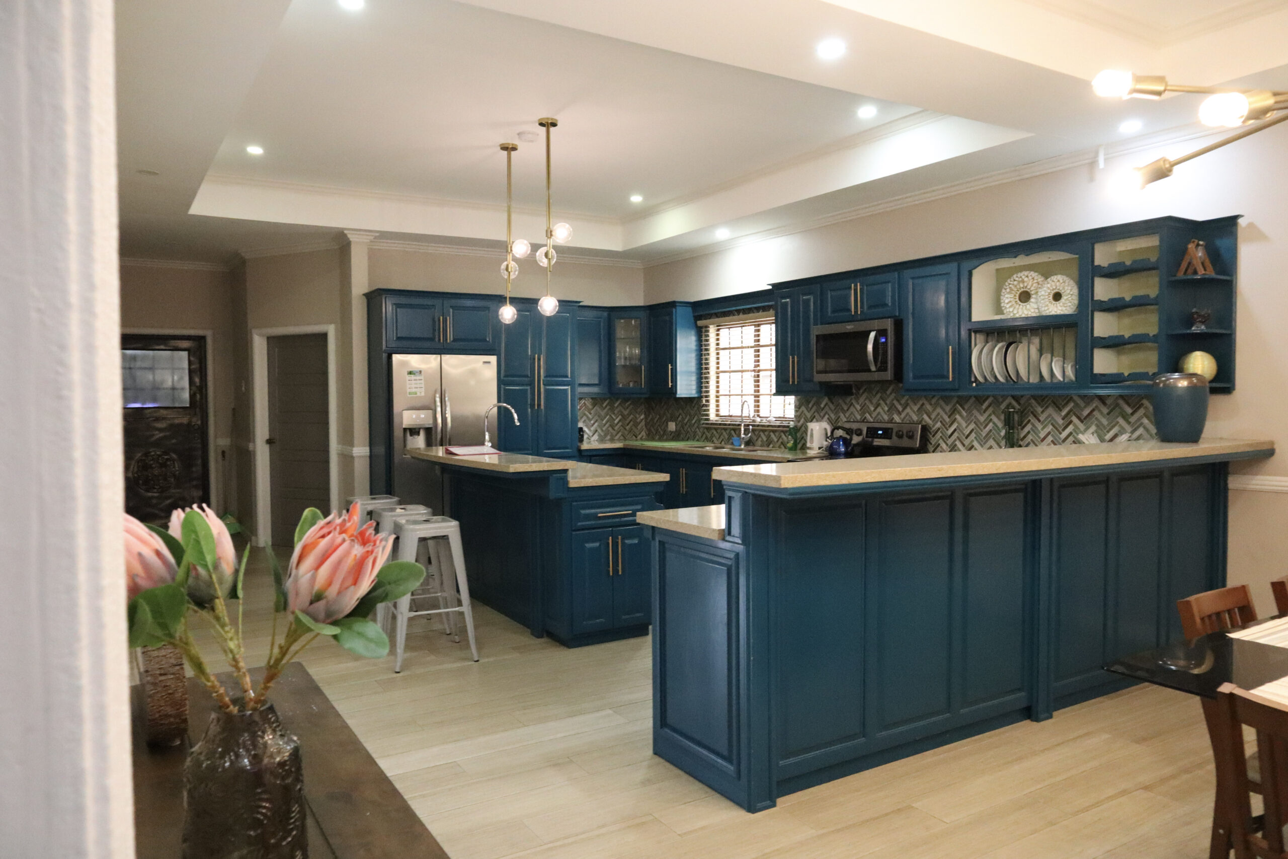 The property features a fully equipped four-bedroom vacation home, two private poolside suites, pool, jacuzzi and a spacious two-story lounge area with an attached kitchen perfect for entertaining and relaxing.